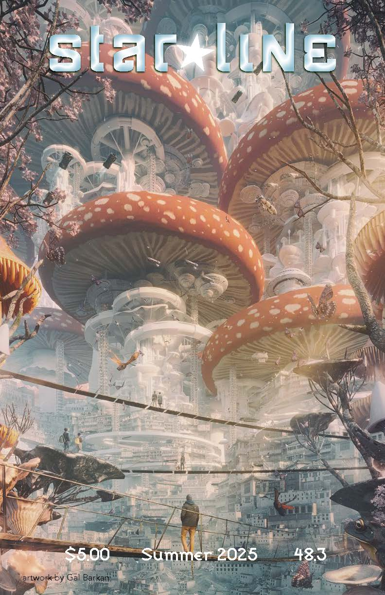 is featured in the Summer 2025 issue of Star*Line, the quarterly journal of the Science Fiction & Fantasy Poetry Association (SFPA). Copies of the issue in either print or Pdf format are available from the SFPA website.